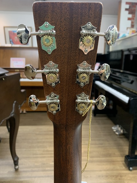 | 2021年製。 フォワードシフテッド・スキャロップド・X・ブレーシングにエボニー材のブリッジと指板、オープンギアタイプのペグなど、戦前を仕様に、ネックにはパフォーミング・アーティスト・スタイルを採用。サドルはピックアップ後付けがしやすいショートタイプになっていたりと、新旧の良いとこどりな一本です‼ |