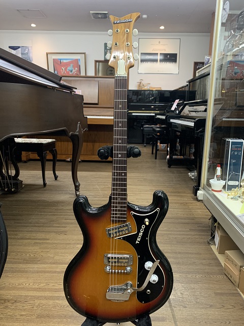 | 1968年製。ジャパンビンテージ、ビザールギター。 60年代当時モズライトのコピーモデルが各メーカーから出始めた頃の一本です。 通常バー・ポールピース・タイプのピックアップが搭載されていますが、こちらはゴールドフォイルを搭載した希少モデルになります。 |
