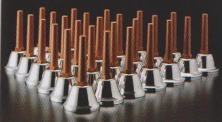 エクセレントシリーズのベルは、従来のベルよりひとまわり大きく、音の伸びもより長くなり、ハンドベルに一歩近づいたといえます。