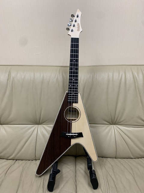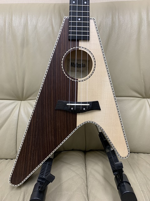 | ハードロックとハワイアンの融合‼ウクレレにしては珍しいオフセットVシェイプのウクレレ‼ ハードなリフやテクニカルなプレイを演奏したくなるウクレレです。 |
