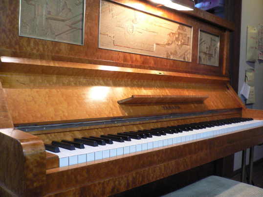 ![]() <ヤマハ bR6693> 製造番号からすると1943(昭和18年)年製のようです。 正面には織物がはめ込まれ、ライトアップするとそれが周囲の木目と調和し、 どちらかというと日本的な雰囲気がかもしだされます。 京都の竹林を背景にすると映えそうな感じでしょうか。 ピアノは元来、ヨーロッパ生まれの楽器のため、国産であっても西洋的な デザインを模倣するというのが通例のなか、このデザインは革新的だといえるでしょう。 戦時中という時代背景もあったのかもしれませんが・・・、 ではこのピアノを設計した斉藤佳三(さいとうかぞう)という人はどのような人物なので しょうか。 => |