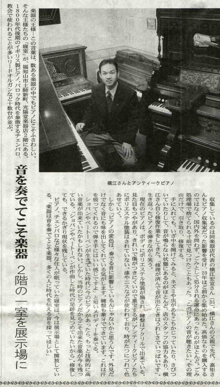 光陽堂楽器福知山店2階 ピアノ展示室が新聞で紹介されました。